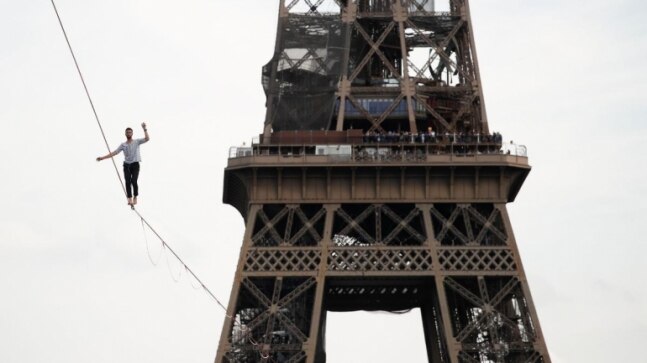 French slackliner walks on rope suspended 70 metres above ground